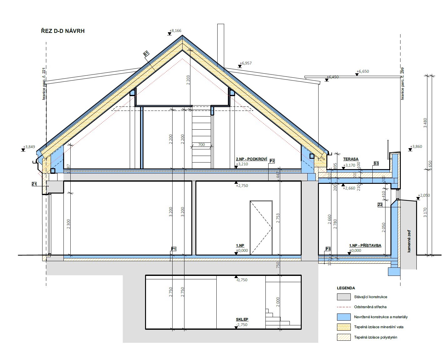 dokumentace, která počítá s rozdělením na 2 samostatné bytové jednotky