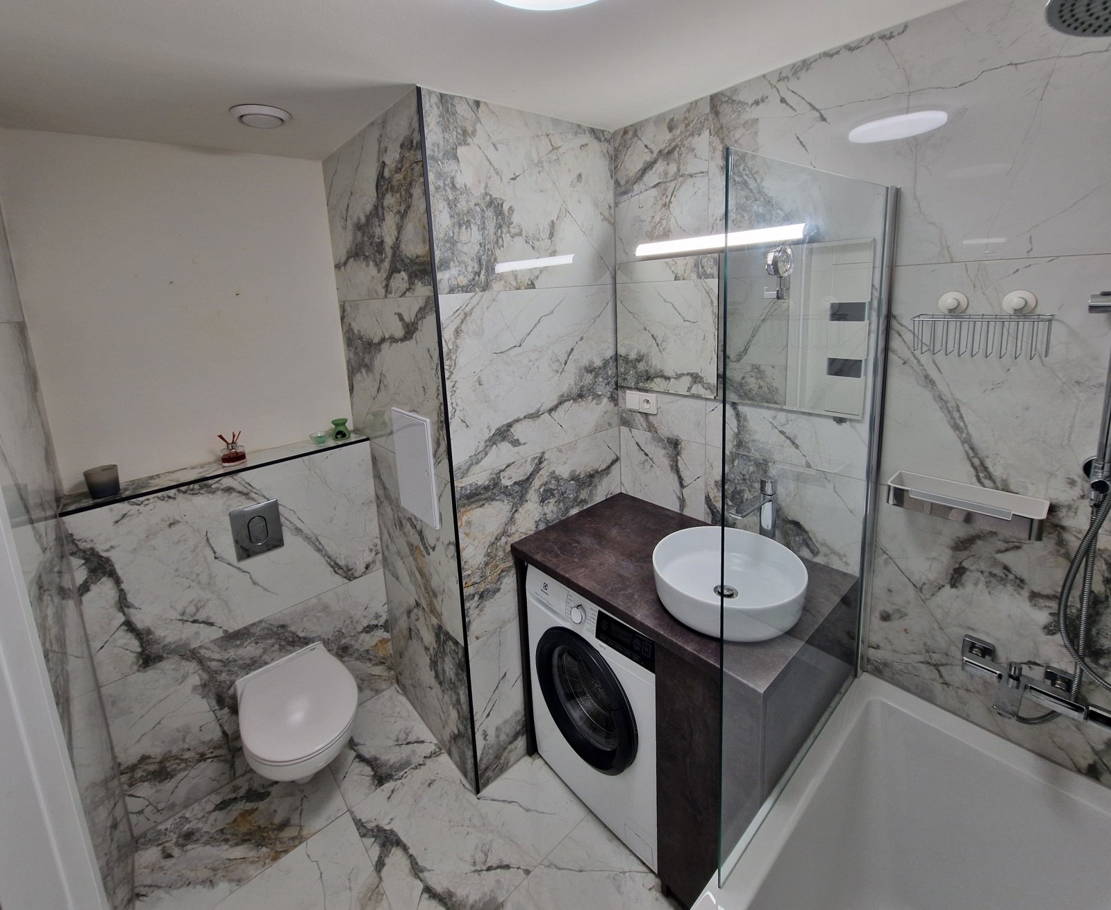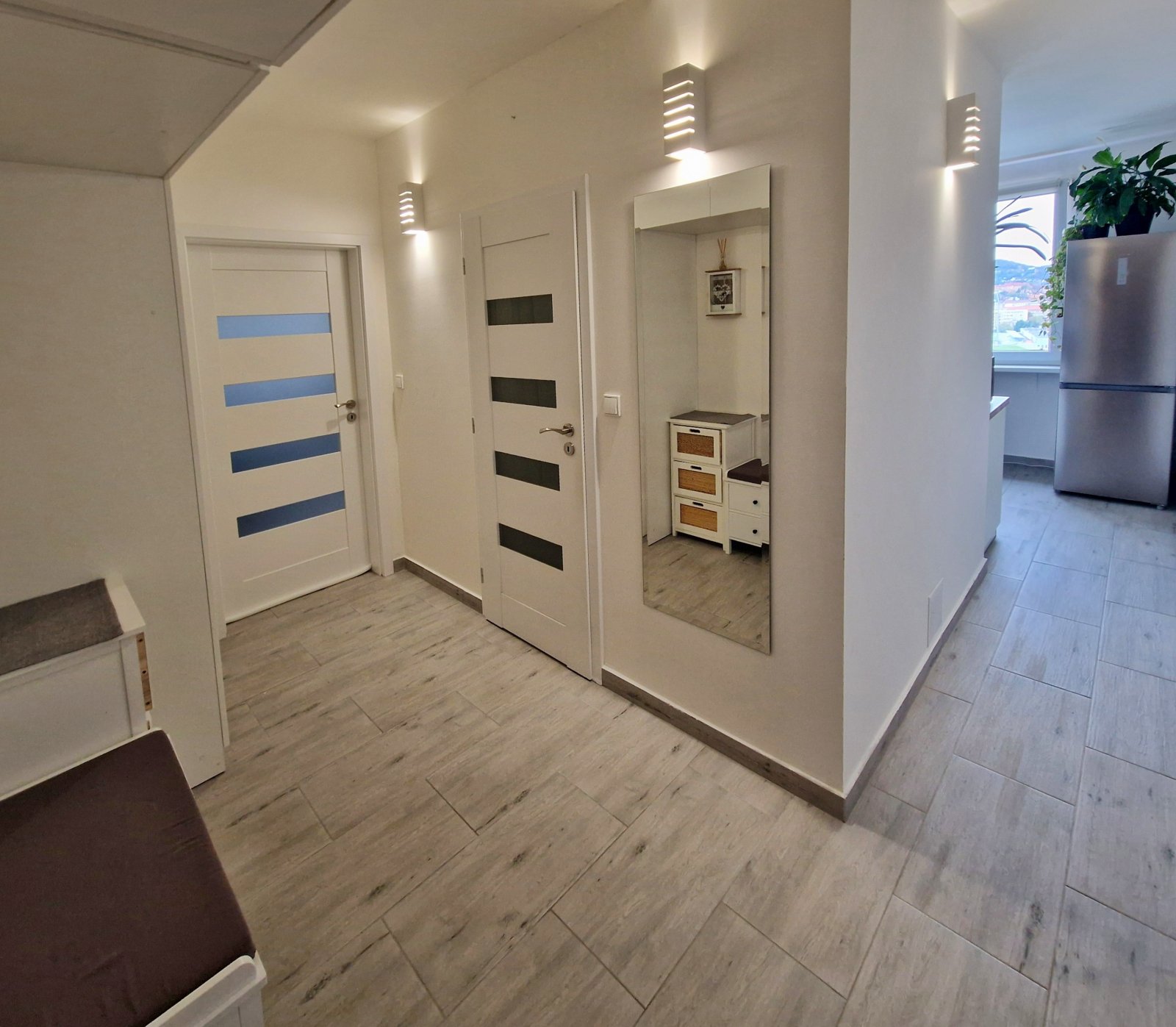 s automatickým odvětráváním. V chodbě je vestavná skříň se